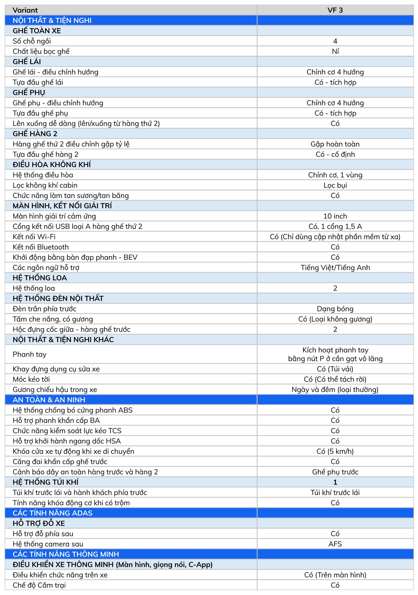 Bảng giá xe VinFast VF 3