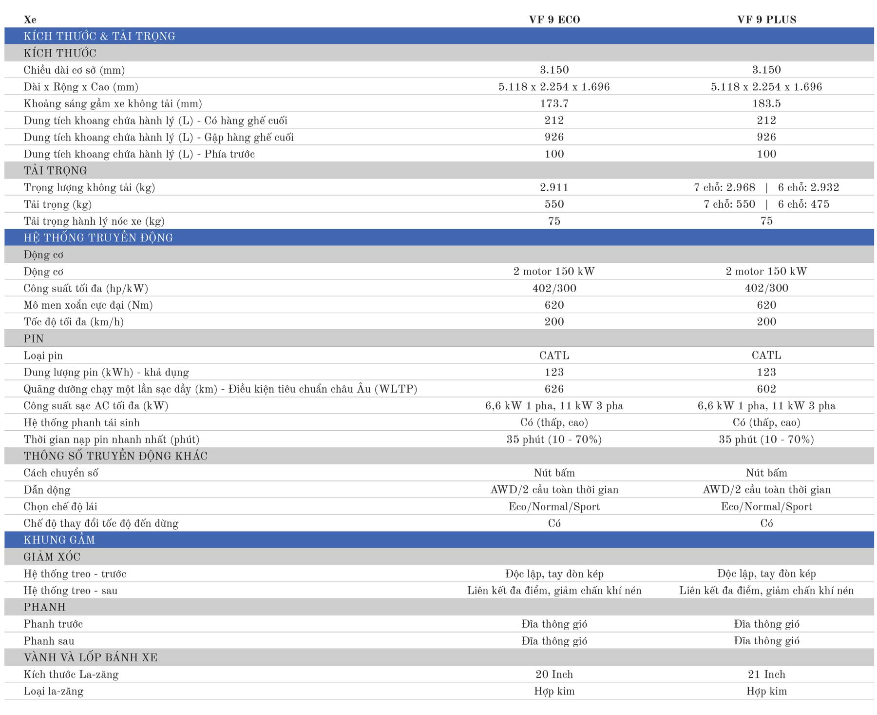 • VinFast VF 9 Plus: 1.699.000.000 VNĐ